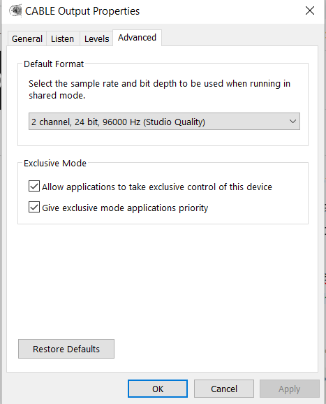 To avoid issues with sound cards in GNU Radio , on my PC, I have set the virtual audio cable as the default sound device.