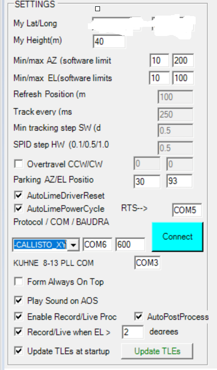 It supports the SPID RAS/BIG RAS rotators including the HR version through the Rot2Prog protocol (0.1 / 0.5 / 1 deg) , the e-Callisto DiSEqC controller and other AZ/EL rotators through HamLib.