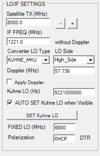 -When the satellite being tracked becomes visible , it automatically programs the 54 MHz -13 GHz Kuhne MKU Local Oscillator. This is the main Local Oscillator I use in my downconverter for frequencies not covered by Airspy / LimeSDR.