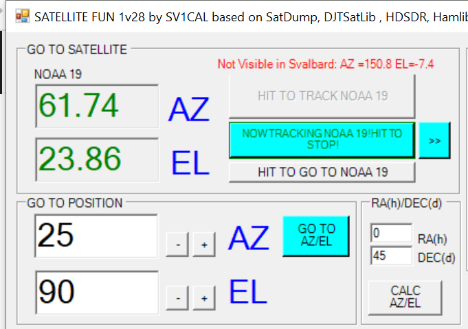 Satellite position calculation is done using David Taylor’s DJTSatLib.dll