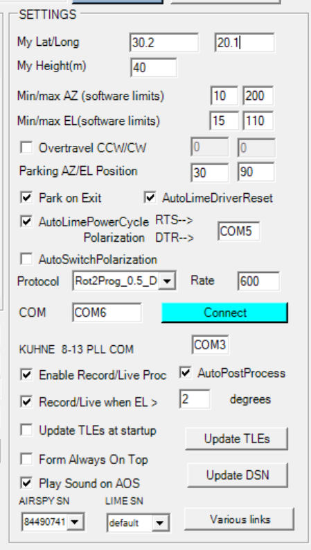 – Can reset Lime’s driver using pnputil or power-cycle it using the RTS signal of a COM port. This is useful when Lime occasionally hangs . With this feature it will be restarted just before the satellite becomes visible (no more Lime crashes …)