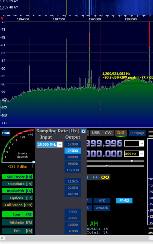 Jean-Luc Milette kindly granted permission to include his custom dll (ExtIO_LimeSDR_WxSats_to_share.dll ) which supports rates up to 60 MSPS. Many thanks Jean-Luc for providing these! These dlls should be pasted to the HDSDR folder .