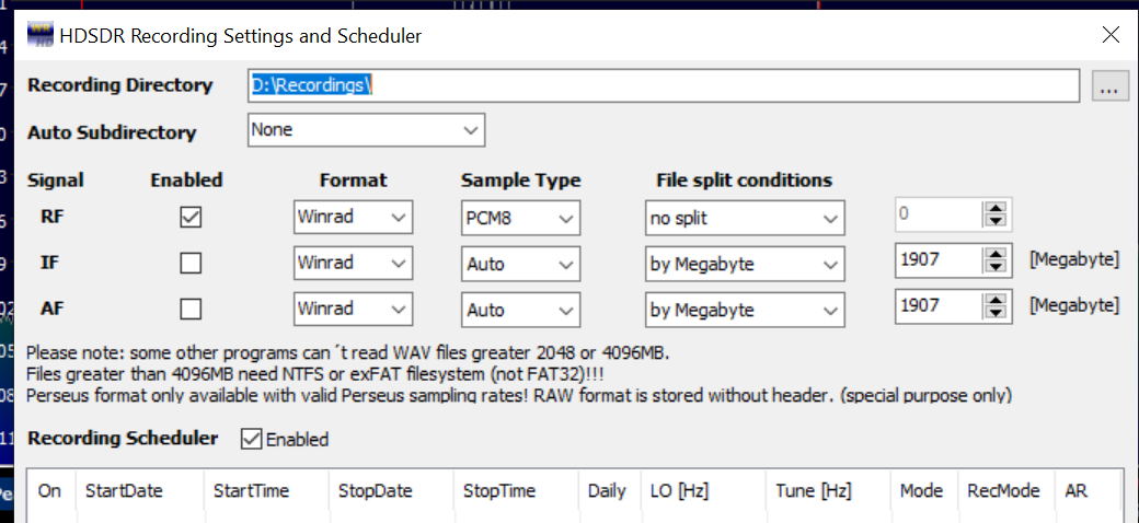If recording will be done with SatDump (>-1.0.0) , then sampling rate, folders etc are passed with command line calls. But This is not supported by HDSDR.